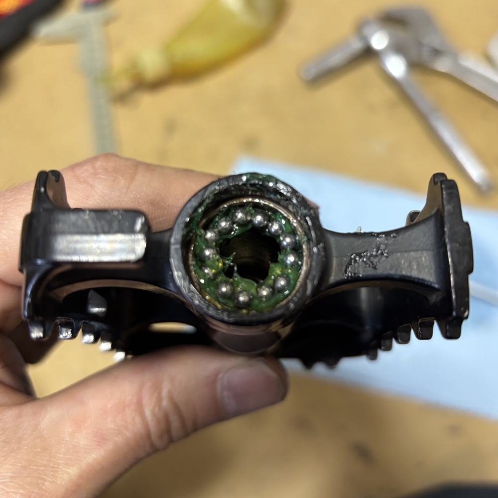 さすがに何年も乗っていると、回転が悪くなっていて、やったことはありませんが、ペダルをバラシて見ることにしました。
